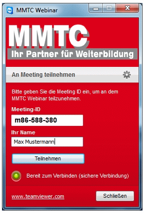 Sie bitte Ihre E-Mails ab, ob Sie eine neue Meeting-ID erhalten